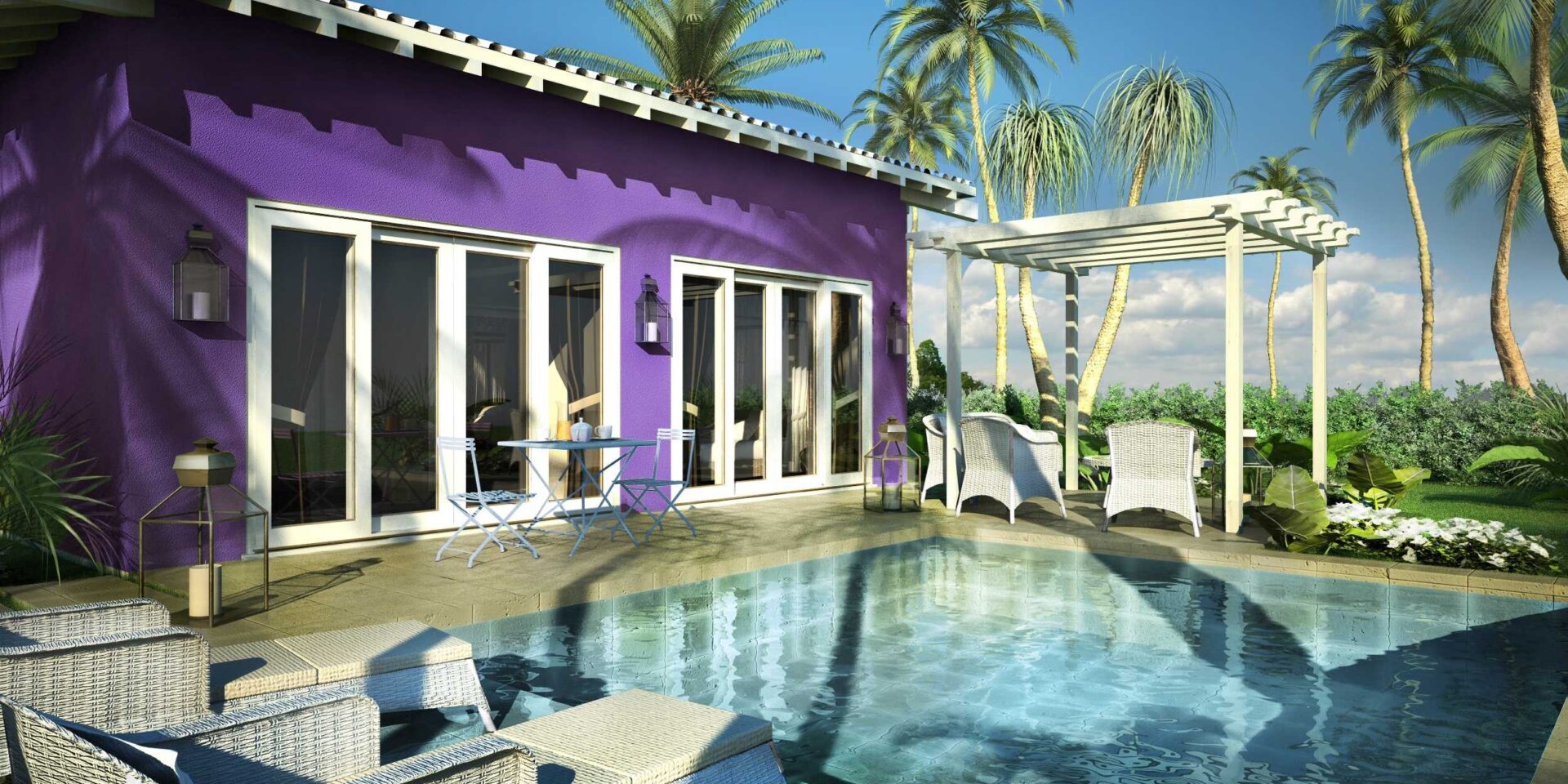 Dizajniran za potpunu privatnost, svaki od 34 suite-a u Eden Roc-u je oaza mira i stila sa sopstvenim bazenom i spa centrom. Visoki plafoni, drvene grede i veliki prozori stvaraju besprekornu vezu sa okolnom prirodom.