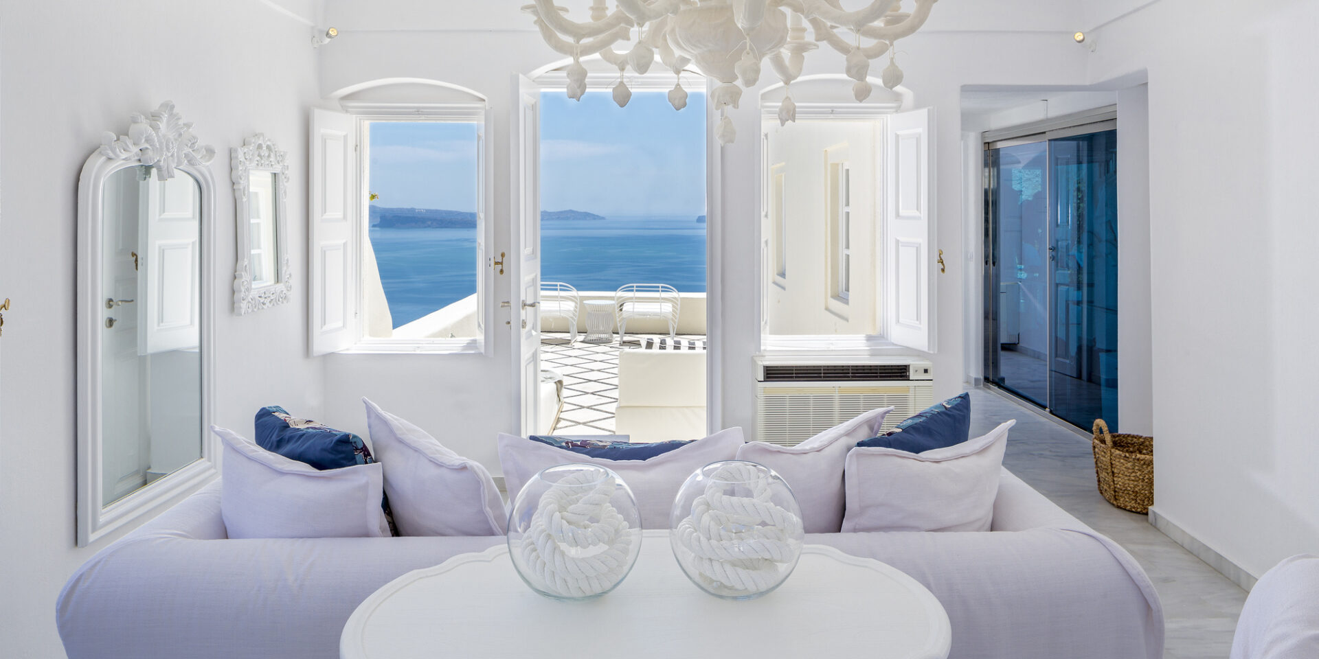 Svi u beloj boji, 22 luksuzna suite-a odražavaju svetlinu santorijanske arhitekture, imaju ogromne prostore i privatne bazene sa zadivljujućim pogledom na Egejsko more. Doživite luksuz bez premca u novorenoviranim Junior Suite-ovima, elegantnim Superior Suite-ovima, jedinstvenom i neviđenom dizajnu River Pool Suite-a i Infinity Pool Suite-a, ili potpuno novom Predsedničkom apartmanu.